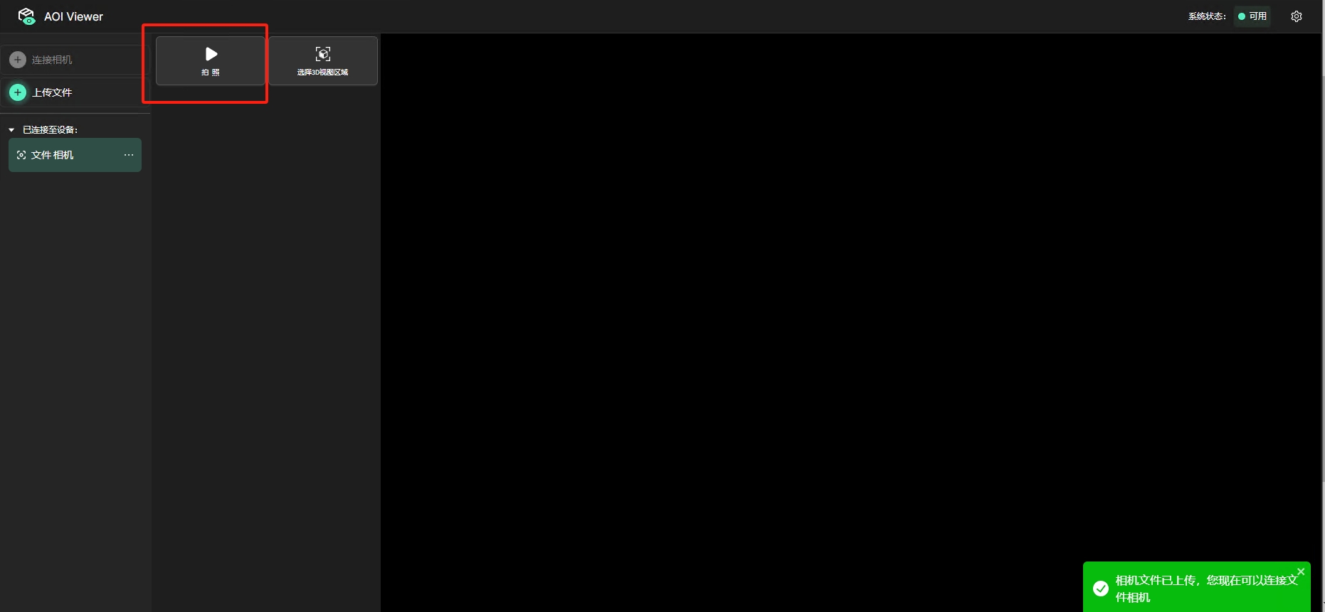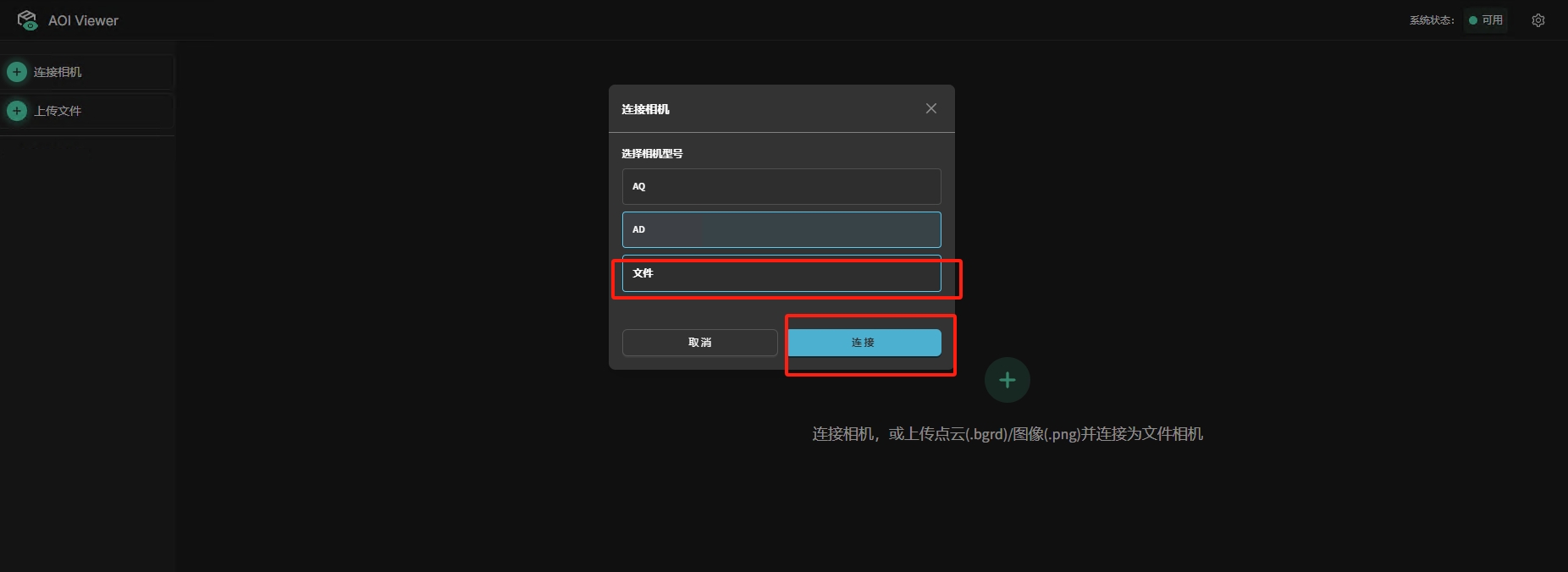 在界面中选择连接相机,选择文件,点击连接