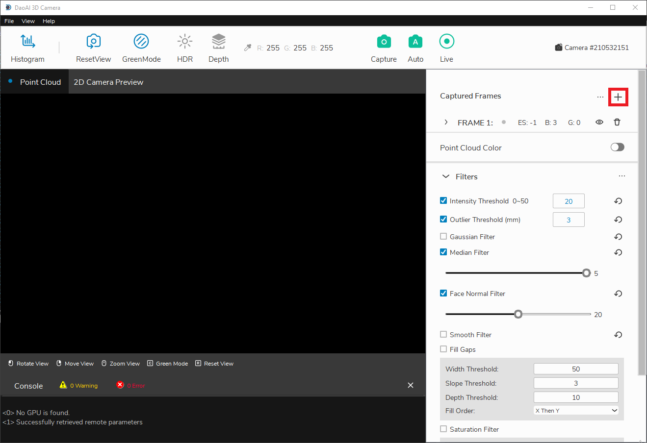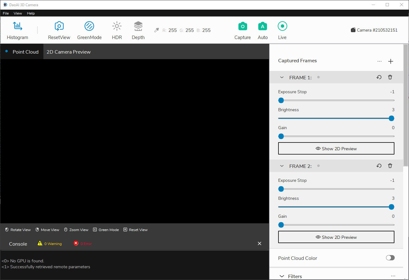 Frames are used to control the capture settings, allowing you to alter properties like exposure stop, brightness, and gain. By adding additional frames, you can capture multiple sets of images for each capture.