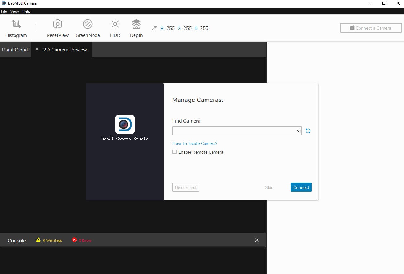 After installing the software, Launch "DaoAI 3D EN.exe" English version or "DaoAI 3D CN.exe" Chinese version,