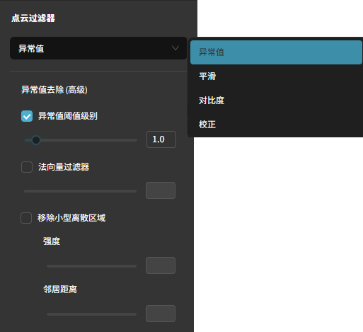 异常值 (Outlier):离群阈值、法向量滤波、移除小型离散区域;去除孤立噪点和悬浮点片。