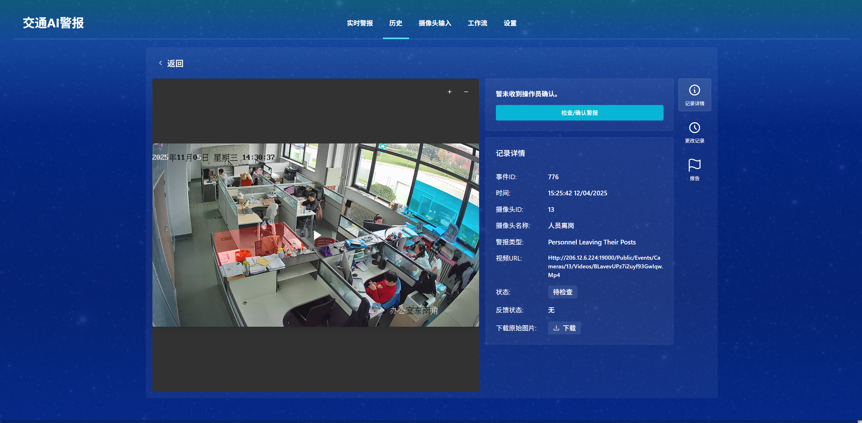事件可视化图片:在详情页可播放事件发生前后 15 秒 的视频片段;