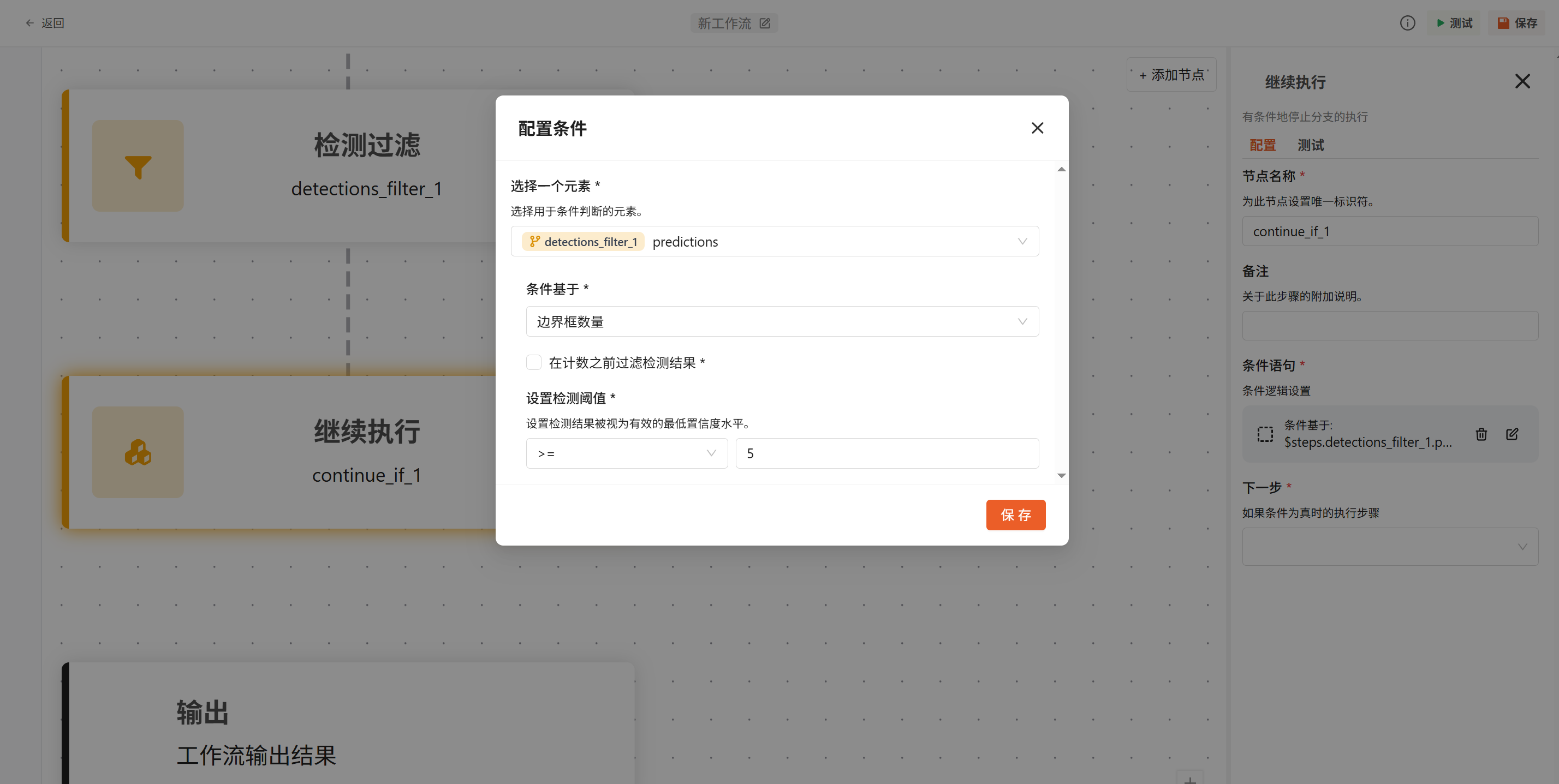 点击画布右上角的 “保存” 按钮保存工作流配置。