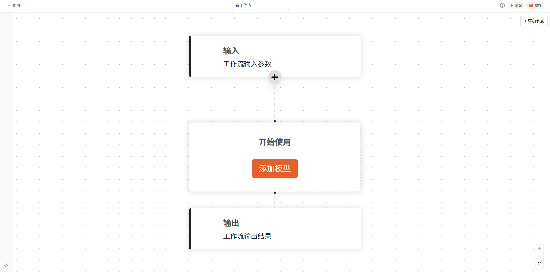 进入工作流管理页面后,点击 “创建工作流”,系统将进入工作流编辑画布界面。。